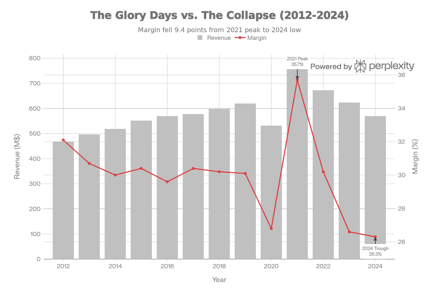 After 2021, Tillys expected the boom in business to continue. As a result, they ordered tons of inventory to keep up with expected demand. But, the covid boom slowed and and sales began to slow down for Tillys. This forced them to slash prices with markdowns in order to sell unwanted inventory and clear warehouses. Gross margins then collapsed plummeting from a peak of 35.7% in 2021 to just 26.6% and they lost $46 million in 2024.